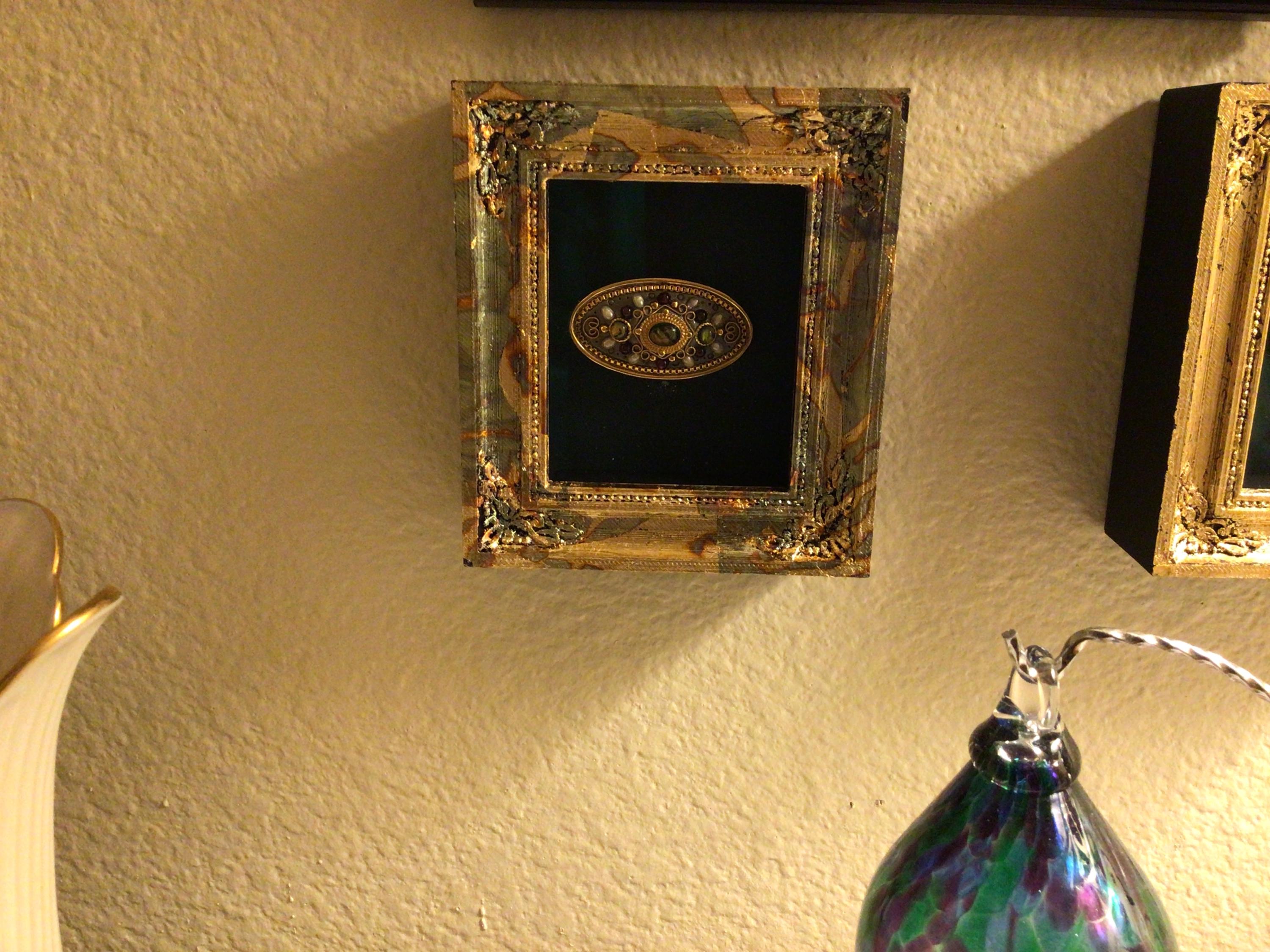 Frames are individually hand gilded and patinated, therefore no two will look exactly alike. They are a one of a kind creation, just for you. This is a very unique finish consisting of gold, copper and blue patina.